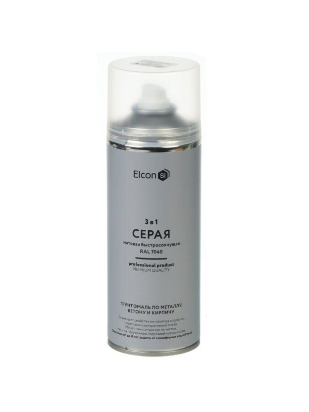 Грунт-эмаль аэрозольная, Elcon, 3в1, по ржавчине, матовая, серая, RAL 7040, 520 мл