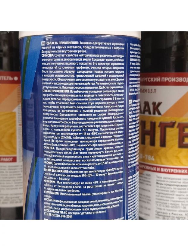 - Состав: модифицированная алкидная смола, пигменты, антикоррозионные наполнители, ингибиторы коррозии, смесь органических растворителей, смесь углеводородных газов, функциональные добавки.