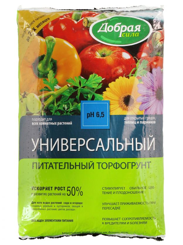Грунт универсальный «Добрая сила» в пакете 5 литров — это готовая почвосмесь на основе натурального торфа, созданная для выращивания овощей, плодовых и декоративных растений, а также рассады. Благодаря сбалансированному составу, грунт обеспечивает быстрый старт роста, насыщает корни влагой и питательными веществами. Если вы ищете, какой грунт выбрать для рассады или что лучше для посадки цветов, этот вариант — универсальное решение для дома, дачи и теплицы.