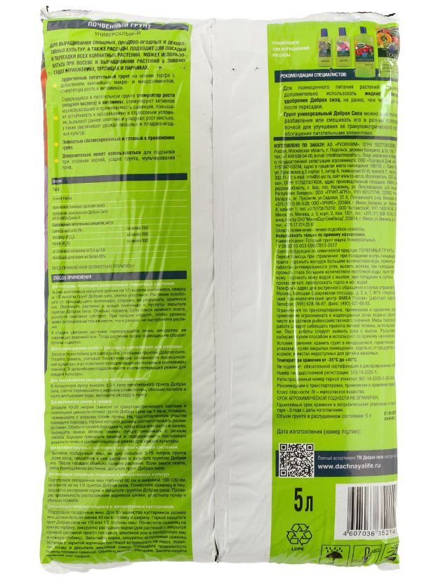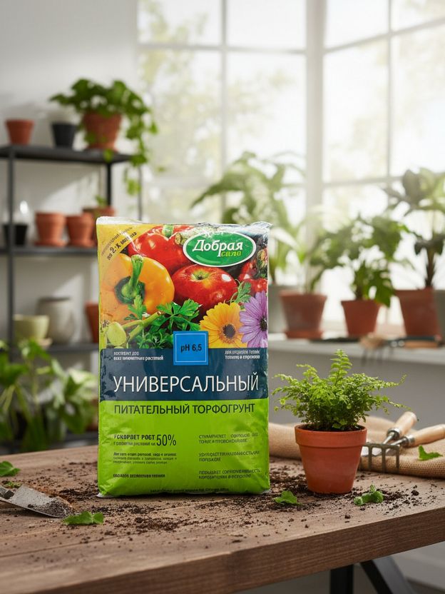 Грунт универсальный «Добрая сила», 5 л: оптимальное решение для рассады, овощей и цветов — здоровые растения без лишних хлопот.
