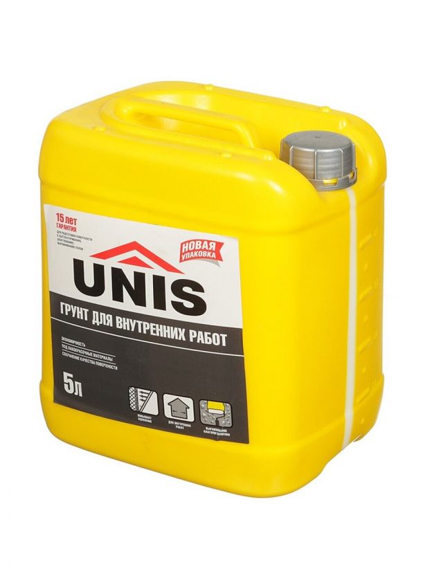 Грунт водно-дисперсионный, акриловый, Unis, для внутренних работ, бесцветный, 5 л