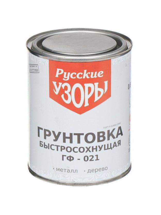 Грунтовка алкидная, Русские узоры, ГФ-21, быстросохнущая, для внутренних и наружных работ, серая, 0.8 кг