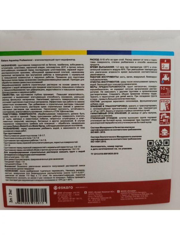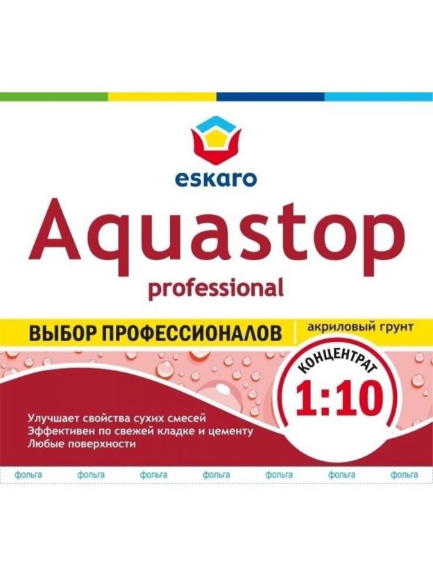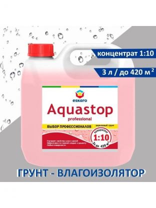 Грунтовка водно-дисперсионная, акриловая, Eskaro, Aquastop Professional, концентрат 1:10, 3 л
