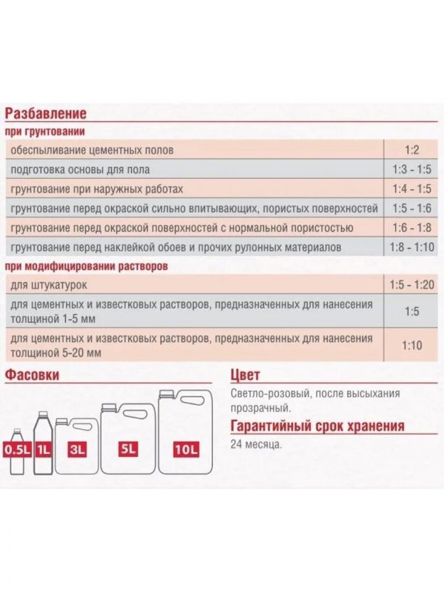 Грунтование при наружных работах: 1:4-1:5.