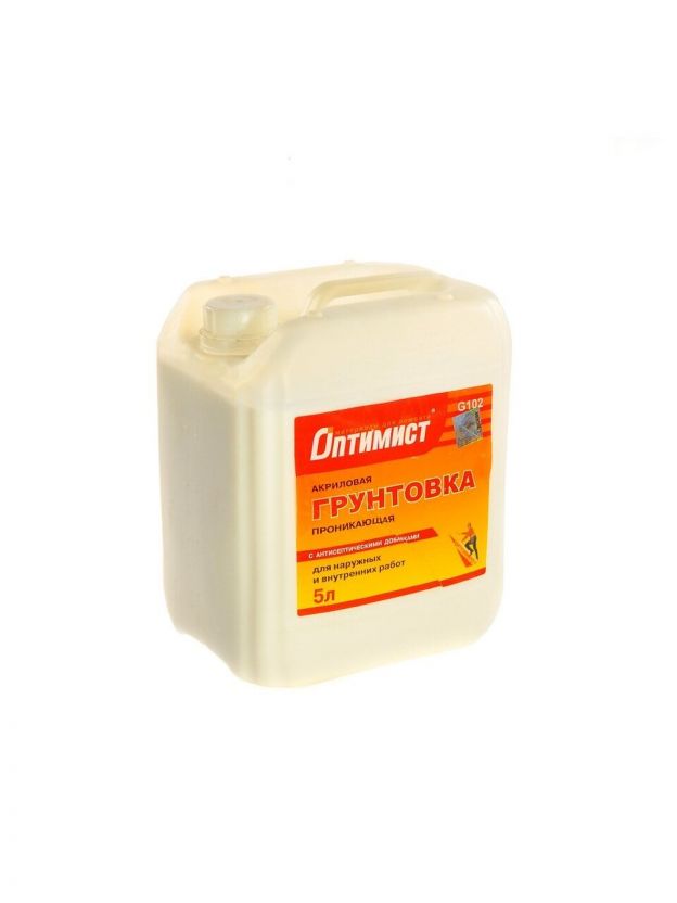 Грунтовка водно-дисперсионная, акриловая, Оптимист, G102, для наружных работ, 5 л, желтая этикетка