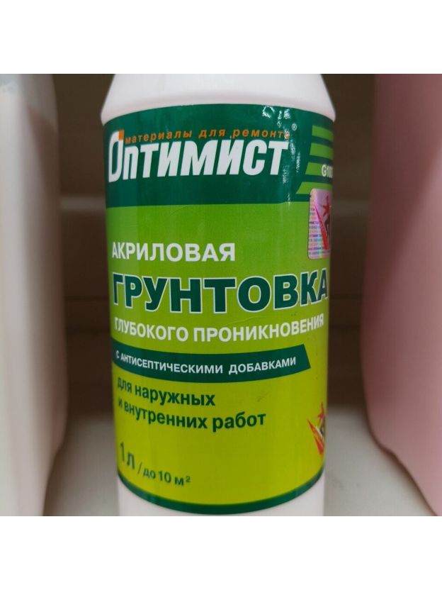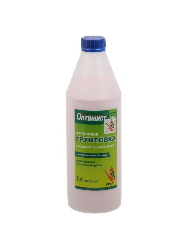 Грунтовка водно-дисперсионная, акриловая, Оптимист, G103, глубокого проникновения, для внутренних и наружных работ, 1 л, зеленая этикетка