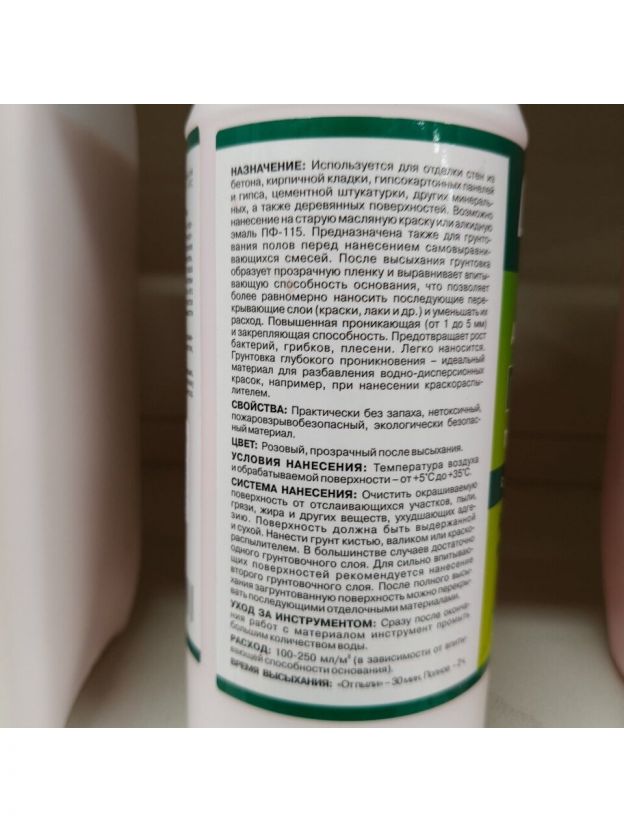 Грунтовка обладает повышенной проникающей и закрепляющей способностью. Предотвращает рост бактерий, грибков, плесени.