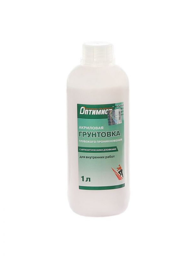 Грунтовка водно-дисперсионная, акриловая, Оптимист, G107, глубокого проникновения, для внутренних работ, 1 л, салатная этикетка