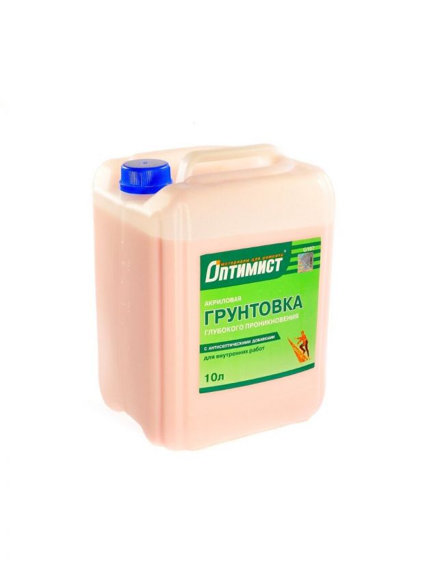 Грунтовка водно-дисперсионная, акриловая, Оптимист, G107, глубокого проникновения, для внутренних работ, 10 л, салатная этикетка