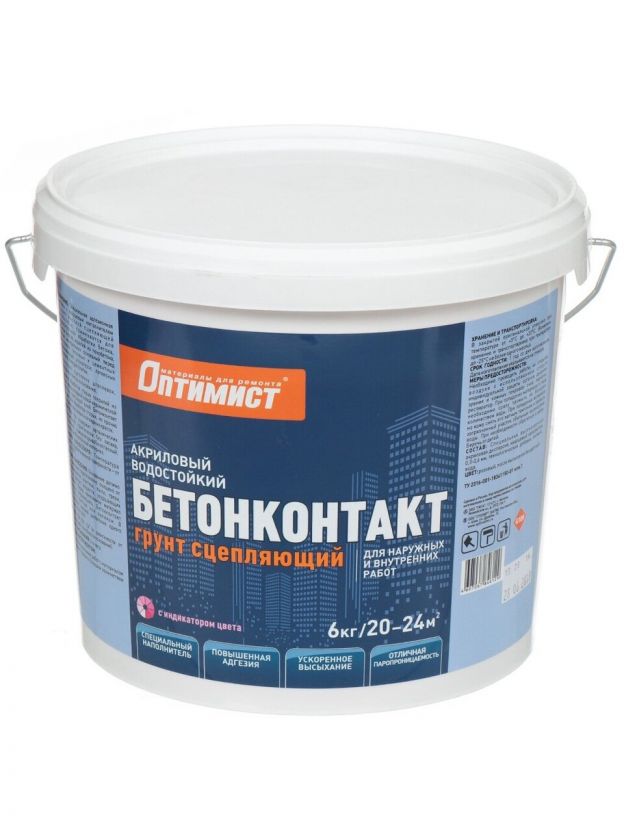 Грунтовка водно-дисперсионная, акриловая, Оптимист, G109, бетоноконтакт, 6 кг