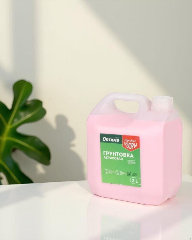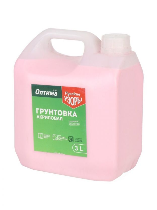 Грунтовка водно-дисперсионная, акриловая, Русские узоры, Оптима R103, глубокого проникновения, для внутренних и наружных работ, 3 л