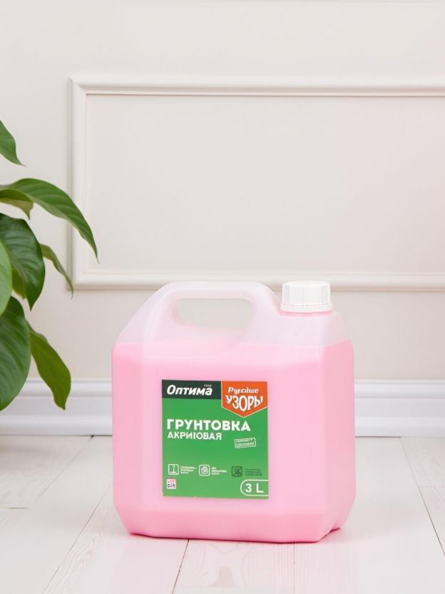 Грунтовка водно-дисперсионная, акриловая, Русские узоры, Оптима R107, глубокого проникновения, для внутренних работ, 3 л