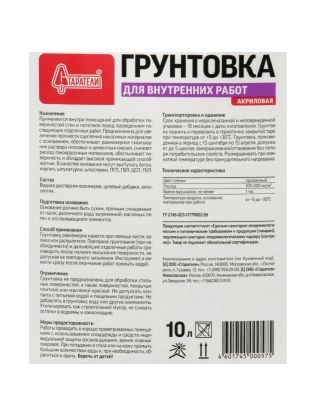 Грунтовка воднодисперсионная акриловая Старатели глубокого проникновения — идеальный выбор для подготовки поверхностей перед внутренней отделкой. Современная формула обеспечивает эффективное укрепление оснований и максимальное проникновение в пористые материалы, что делает грунтовку незаменимой для качественного ремонта в доме или на даче. Благодаря акриловой основе достигается высокая степень сцепления с последующими слоями отделочных материалов, что гарантирует долговечность и надежность результата.