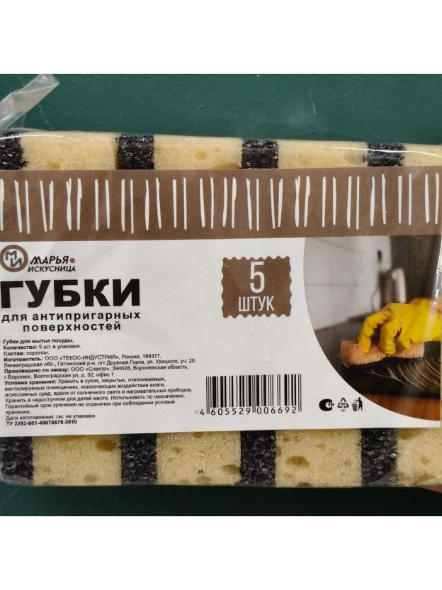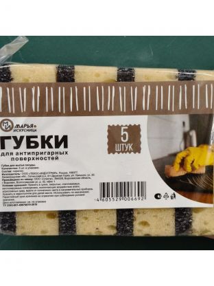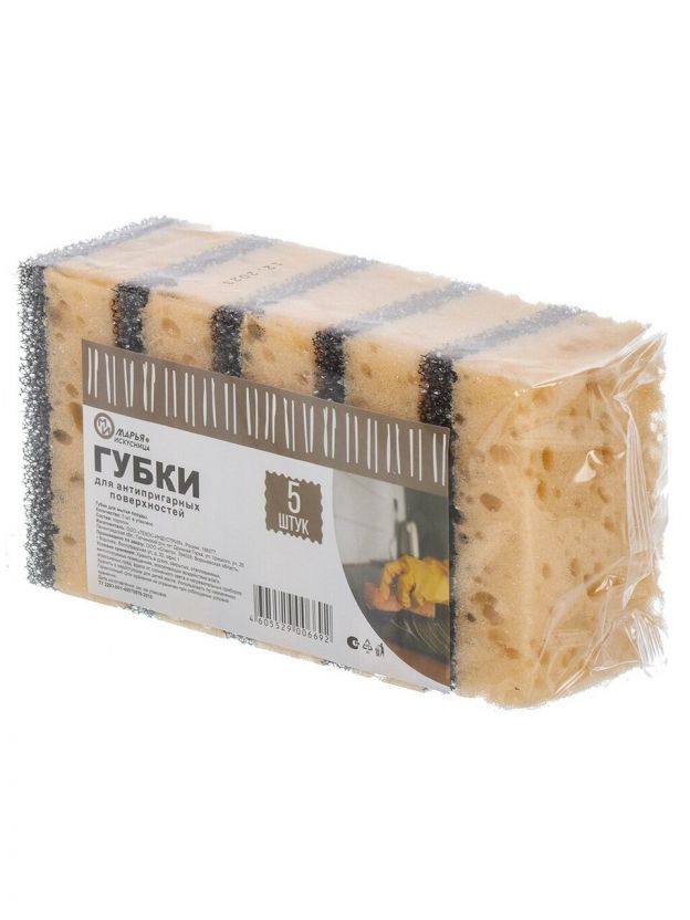 Губка для антипригарных поверхностей, 5 шт, поролон, 2 слоя, Марья Искусница