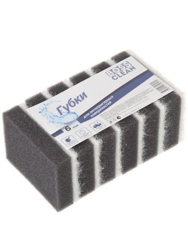 Губки Bossclean изготовлены из поролона и фибры без абразива. Благодаря мягкому чистящему слою подходят для мытья антипригарного покрытия.