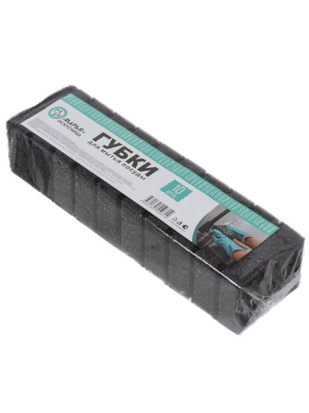 Набор черных губок для мытья посуды Марья Искусница из высокопрочного поролона. На обратной стороне губок закреплен износостойкий абразив, который позволяет отмывать даже самые стойкие загрязнения. Губки Марья Искусница обеспечивают моментальное вспенивание, легко промываются водой и быстро высыхают.