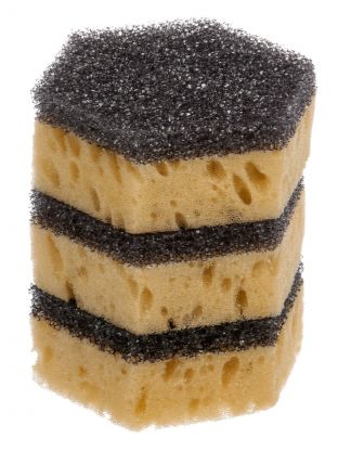 Размер каждой губки оптимален для комфортного захвата одной рукой, материал — плотный поролон, количество в упаковке — 3 штуки.
