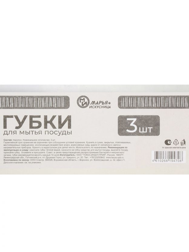 Какой размер у губки для посуды Марья Искусница?