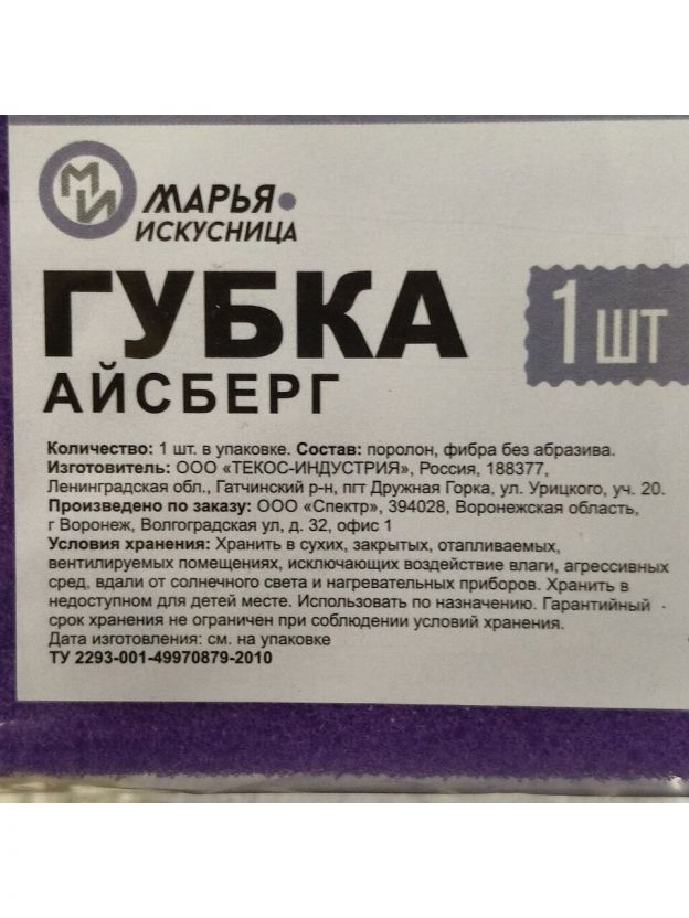 Губка для посуды для деликатных поверхностей, Айсберг, поролон, Марья Искусница