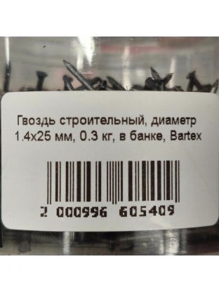 Гвоздь строительный, диаметр 1.4х25 мм, 0.3 кг, в банке, Bartex