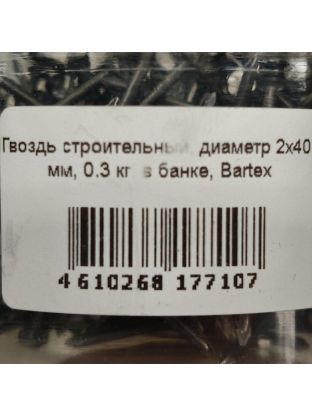 Гвоздь строительный, диаметр 2х40 мм, 0.3 кг, в банке, Bartex