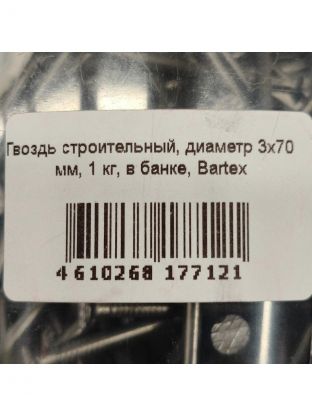 Гвоздь строительный, диаметр 3х70 мм, 1 кг, в банке, Bartex