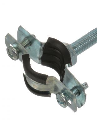 Данный хомут предназначен для крепления труб диаметром 3/8 дюйма. В комплекте предусмотрены шпилька и дюбель для надёжного монтажа к стене или потолку.