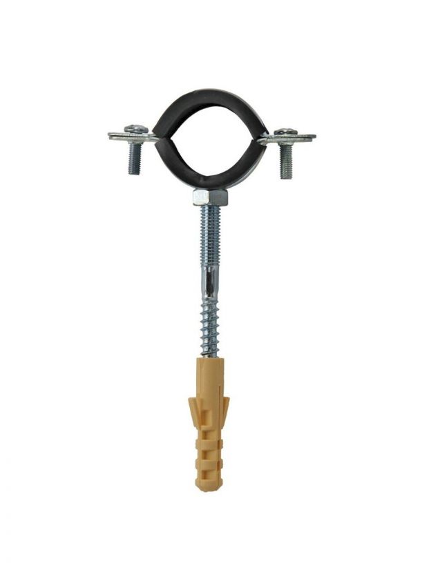 Хомут для крепления трубы, 4"1/2, 120-129 мм, сталь, со шпилькой и дюбелем, РосТурПласт, 040040