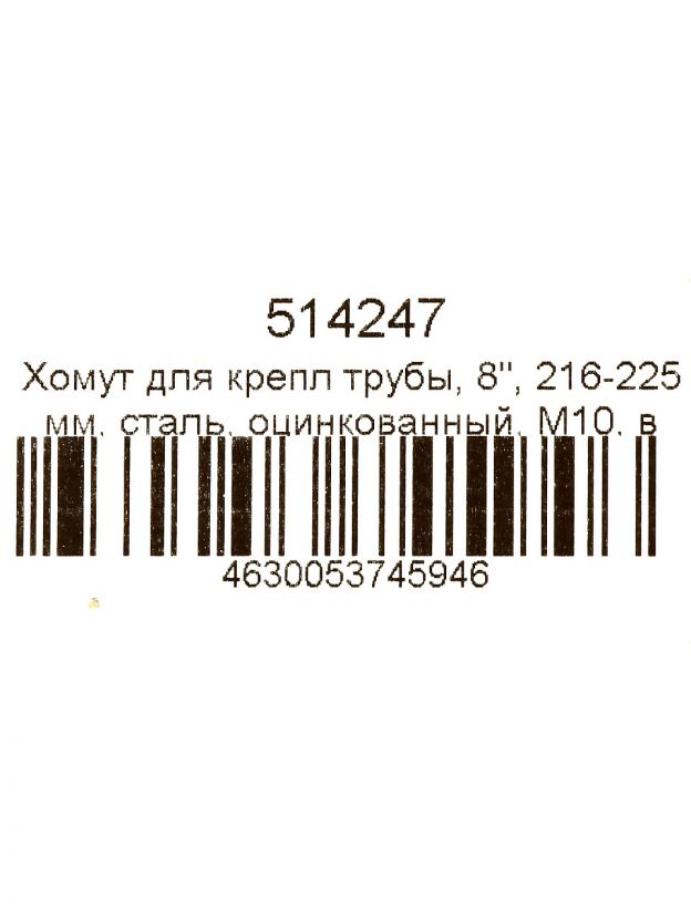 - Диапазон обхвата 216-225 мм — оптимально для труб 8", оцинкованная сталь защищает от коррозии и увеличивает срок службы.
