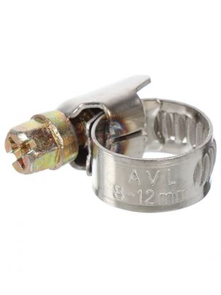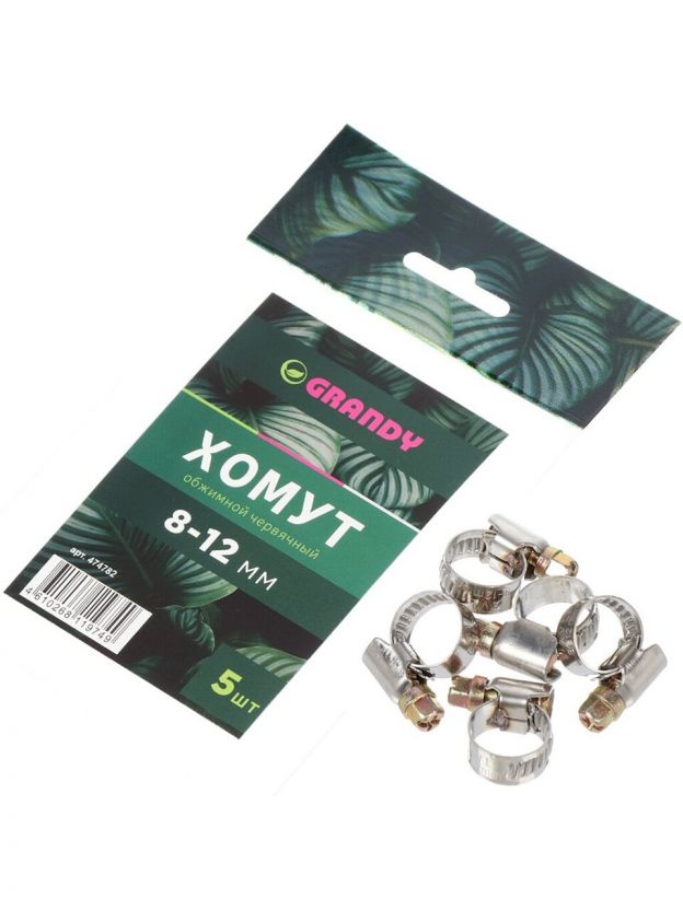 Хомут обжимной червячный, 8-12 мм, нержавеющая сталь, 5 шт, индивидуальная упаковка, Grandy