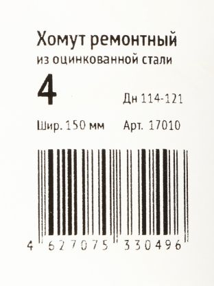 Данный хомут рассчитан на трубы диаметром 4" (примерно 110 мм), ширина ремонтной зоны — 150 мм. Для других диаметров подберите соответствующую модель.