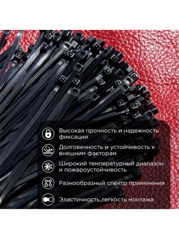 Повысьте эффективность и аккуратность ваших проектов с кабельными стяжками Rexant! Идеально подходящие для организации кабелей и проводов, эти стяжки обеспечат надежную фиксацию и порядок. Изготовленные из прочного нейлона, они гарантируют долговечность и устойчивость к внешним воздействиям.