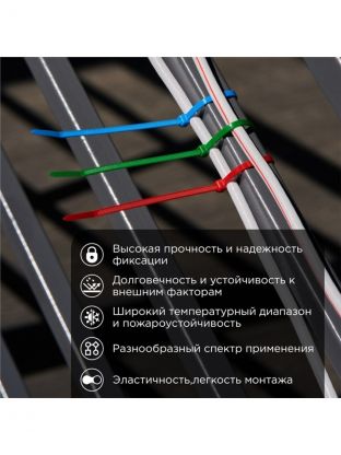 Хомут стяжной кабельный, 3.6х200 мм, нейлон, 25 шт, набор, 5 цветов, Rexant, 07-0208-25