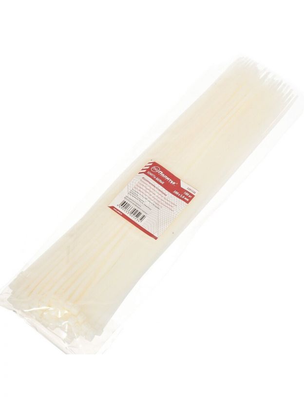 Хомут стяжной кабельный, 3.6х300 мм, нейлон, 100 шт, белый, Политех, 3201330