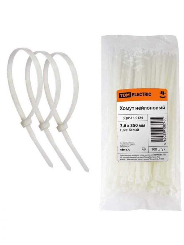 Хомут стяжной кабельный, 3.6х350 мм, нейлон, 100 шт, белый, TDM Electric, SQ0515-0124