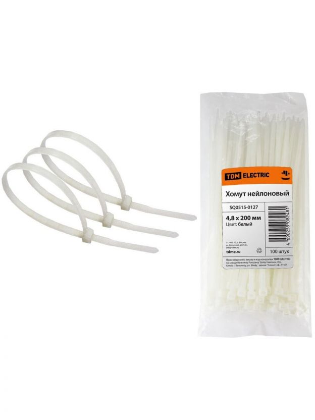 Хомут стяжной кабельный, 4.8х200 мм, нейлон, 100 шт, белый, TDM Electric, SQ0515-0127