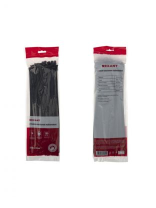 Хомут стяжной кабельный, 4.8х300 мм, нейлон, 100 шт, черный, Rexant, 07-1303
