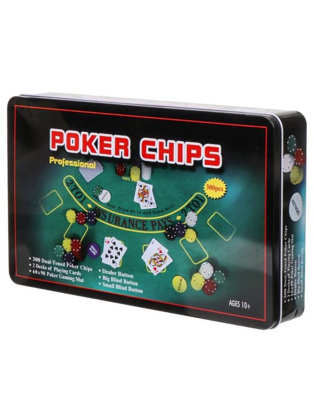 В комплекте игры Покер: 300 игровых фишек, 2 колоды карт, игровое поле, фишки "DEALER" и "SMALL BLIND".