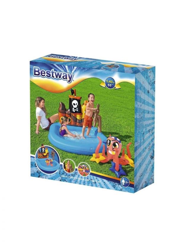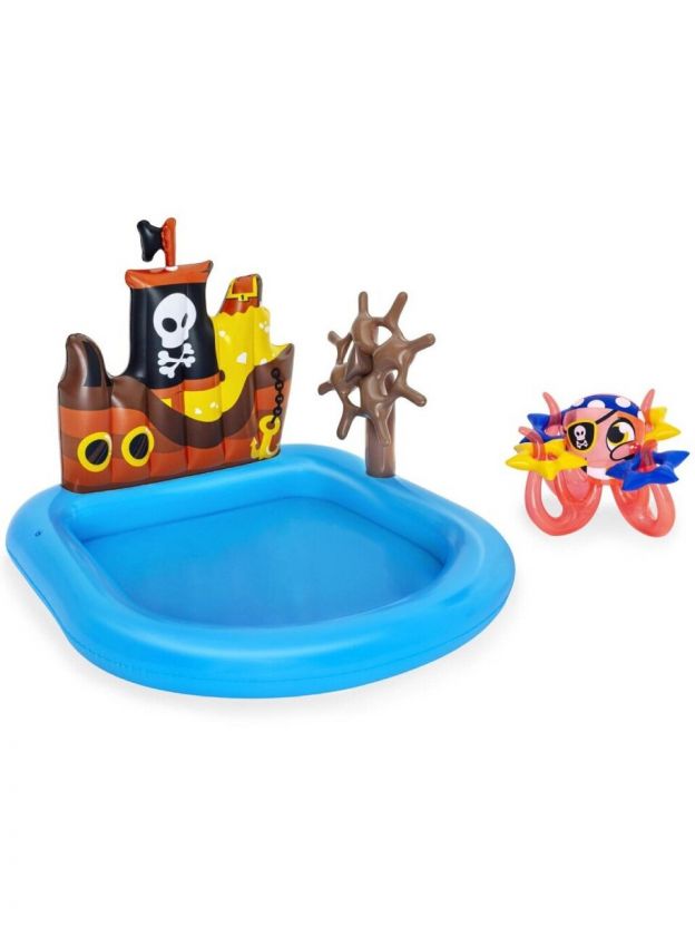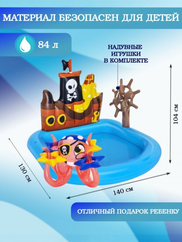Благодаря этому детскому бассейну, каждый день на даче станет маленьким приключением. Дети смогут наслаждаться водой, играя в безопасной и веселой обстановке. Пиратский корабль с вращающимся рулем и осьминогом с кольцами вдохновят малышей на новые игры и фантазии, развивая их воображение и координацию движений.