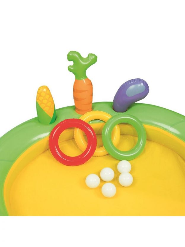 Игровой центр-бассейн Bestway — это не просто детский бассейн для дачи, а настоящий игровой комплекс, который включает в себя множество интересных элементов. В комплект входят 3 надувных кольца, надувная морковь, баклажан и початок кукурузы, а также 5 мячиков для игр. Все эти элементы создают атмосферу настоящей фермы, где дети могут весело проводить время, играя и развивая свои навыки.