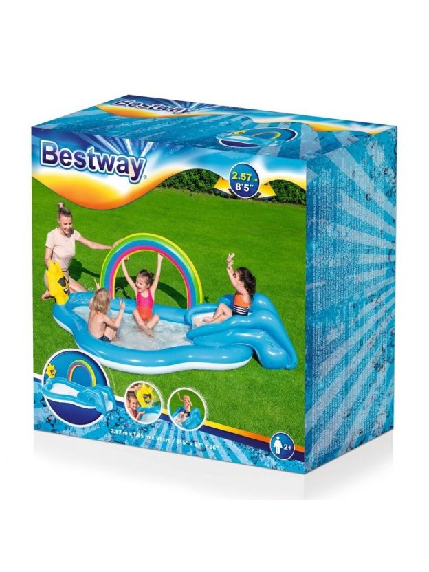 Игровой центр-бассейн Bestway, 257х145х91 см, Радуга и брызги, 53092, 170 л, с разбрызгивателем