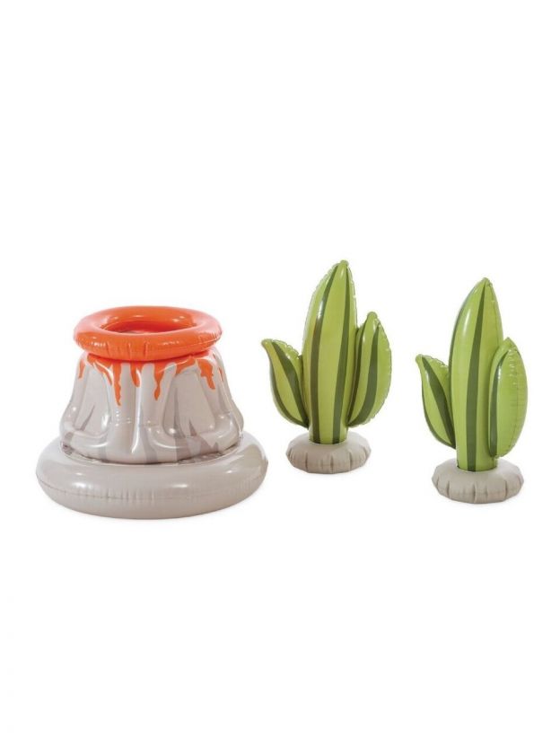 Бассейн детский Intex обладает всеми необходимыми характеристиками для безопасного и увлекательного времяпрепровождения. Изготовленный из прочного ПВХ, он гарантирует долговечность и надежность. Надувной игровой центр оснащен встроенным разбрызгивателем воды, который легко подключается к садовому шлангу, создавая эффект настоящего фонтана. В комплект входят три динозавра, два кактуса и одна яма для вулканических шаров, что делает игру еще более захватывающей.
