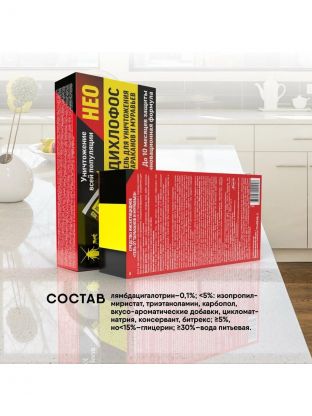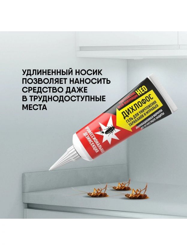 Дихлофос НЕО - гель для уничтожения тараканов и муравьёв предназначен для уничтожения ползающих насекомых. Средство обеспечивает защитный барьер до 2 месяцев.