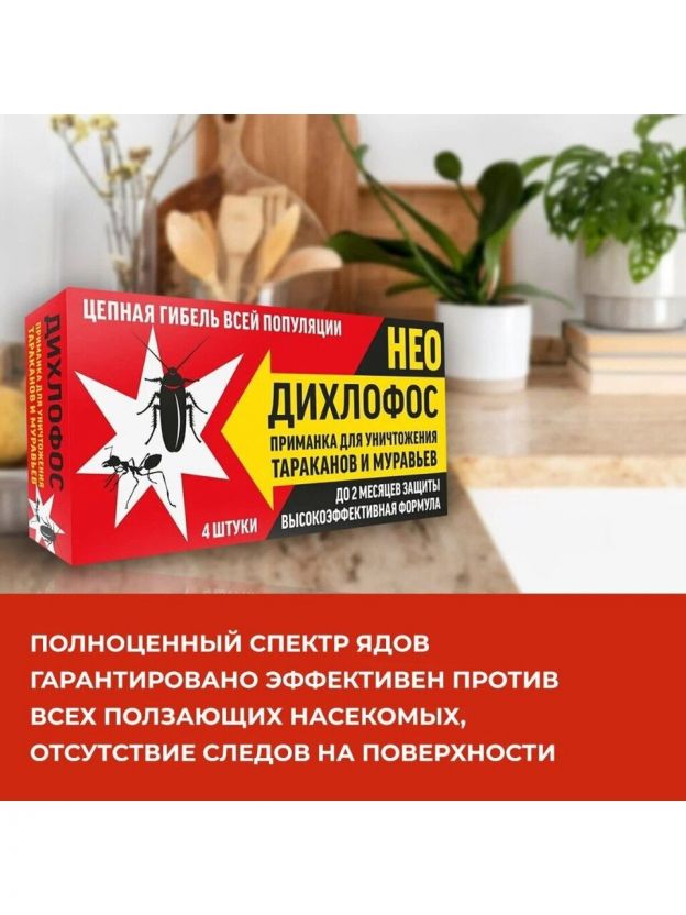 Инсектицид Дихлофос Нео, от муравьев и тараканов, приманка, 4 шт, Арнест