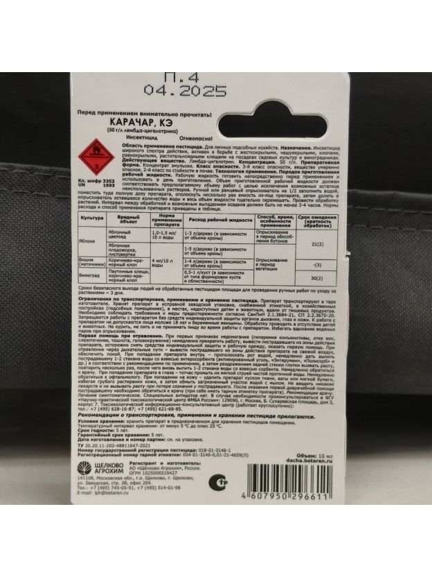 Инсектицид Карачар, от вредителей, жидкость, 10 мл, Щелково Агрохим