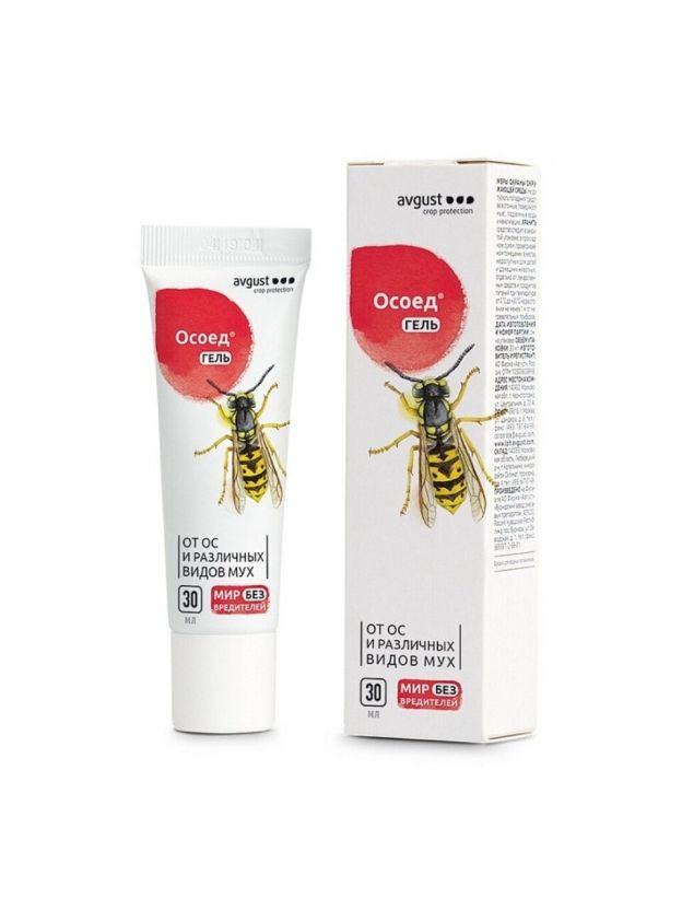 Чтобы избавить вас от неприятного соседства с осами, компания «Август» предлагает эффективное средство для борьбы с этими опасными насекомыми – «Осоед» из серии «Мир без вредителей». Этот препарат в форме геля станет настоящим спасением для дачников и владельцев загородных домов, так как защищает участок от ос. Насекомые погибают в течение нескольких минут после контакта со средством.