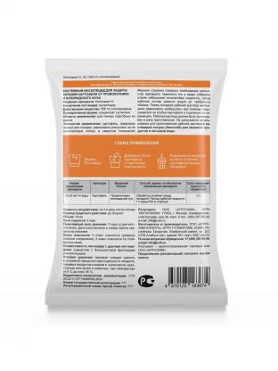 После высева клубней картофеля, препарат воздействует в двух направлениях: создает защитную пленку вокруг семени, защищая его от почвообитающих насекомых, и, по мере роста, проникает в само растение, обеспечивая длительную защиту от вредителей.