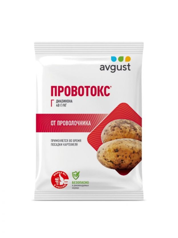 Одним из насекомых, врагов картофелевода, является проволочник. Бороться с этой личинкой жука-щелкуна без специальных средств очень сложно. Проволочник прогрызает в картофельных клубнях многочисленные ходы, из-за чего тот теряет товарный вид и плохо хранится, легко подвергаясь различным заболеваниям. Кроме того, он уничтожает семена растений, корни, луковицы и клубни цветов. Закладка при посадке в лунку с картофелем нескольких гранул «Провотокса» позволяет полностью решить вопрос с этим вредителем. Препарат равномерно распределяется в почве и обеспечивает длительный защитный эффект.
