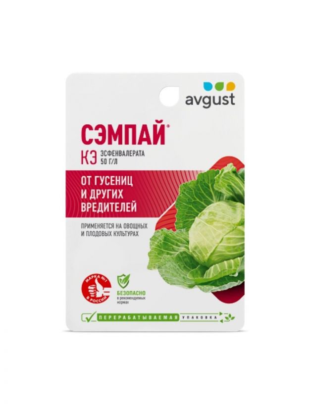 Сэмпай – лучшее решение проблем с гусеницами. При его использовании гибель вредных насекомых наблюдается уже в течение 0.5-2 ч. При этом гусеницы погибают как при соприкосновении с раствором, так и при поедании листьев обработанных растений. Кроме того, Сэмпай обладает хорошим отпугивающим эффектом, который выражается в нарушении питания личинок и откладки яиц у взрослых насекомых.