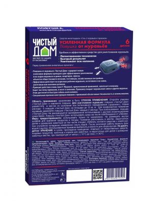 Обеспечьте защиту от муравьев с инсектицидом "Чистый Дом" в виде пластиковых ловушек. Этот набор из 6 ловушек станет надежным помощником в борьбе с вредителями, обеспечивая чистоту и комфорт в доме.